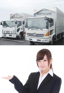 KIZUNA引越センター(引越し事業部) KIZUNAライン(一般貨物配送事業部) 府中市不用品回収センター(粗大ゴミ回収事業部) |